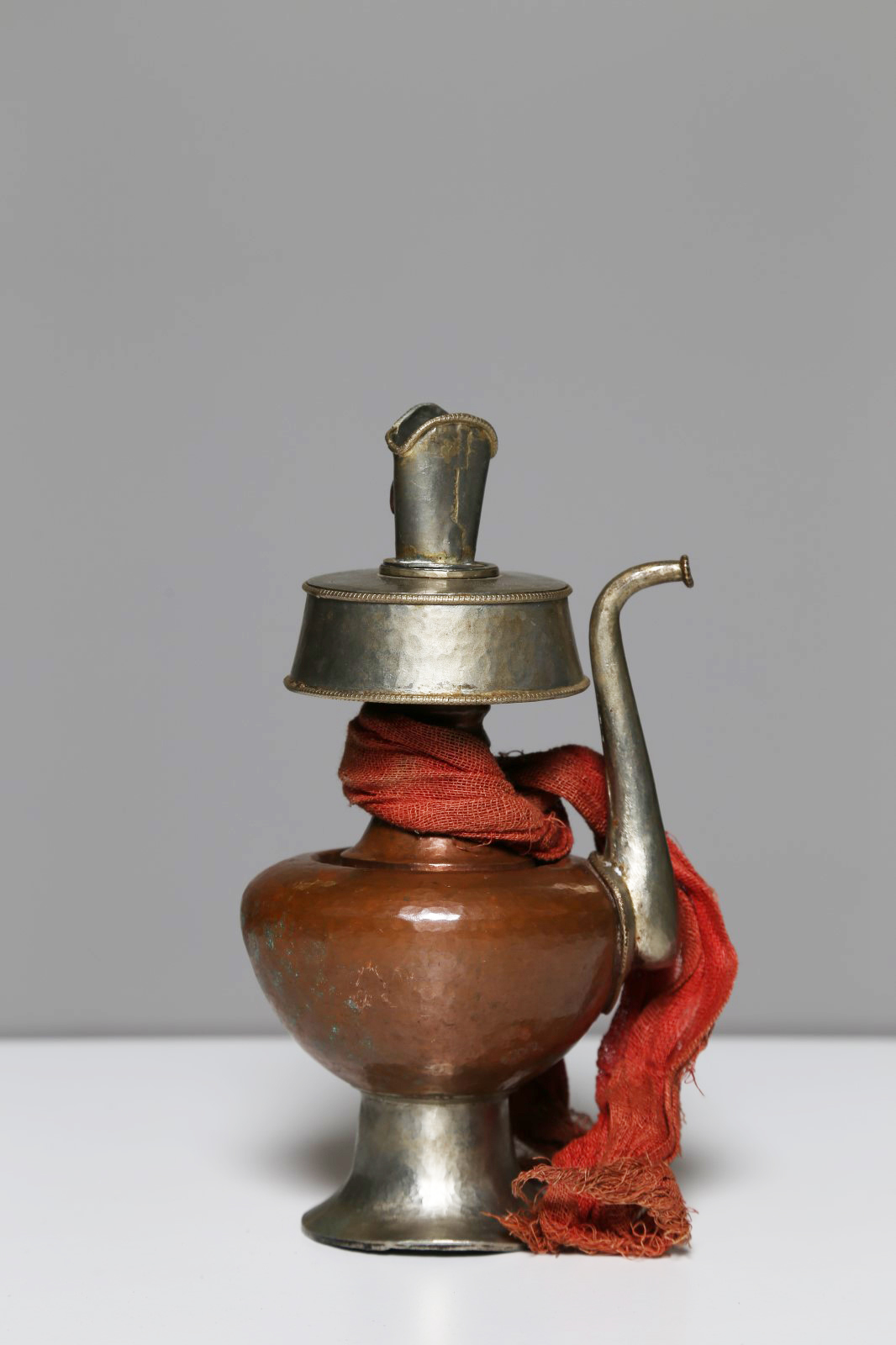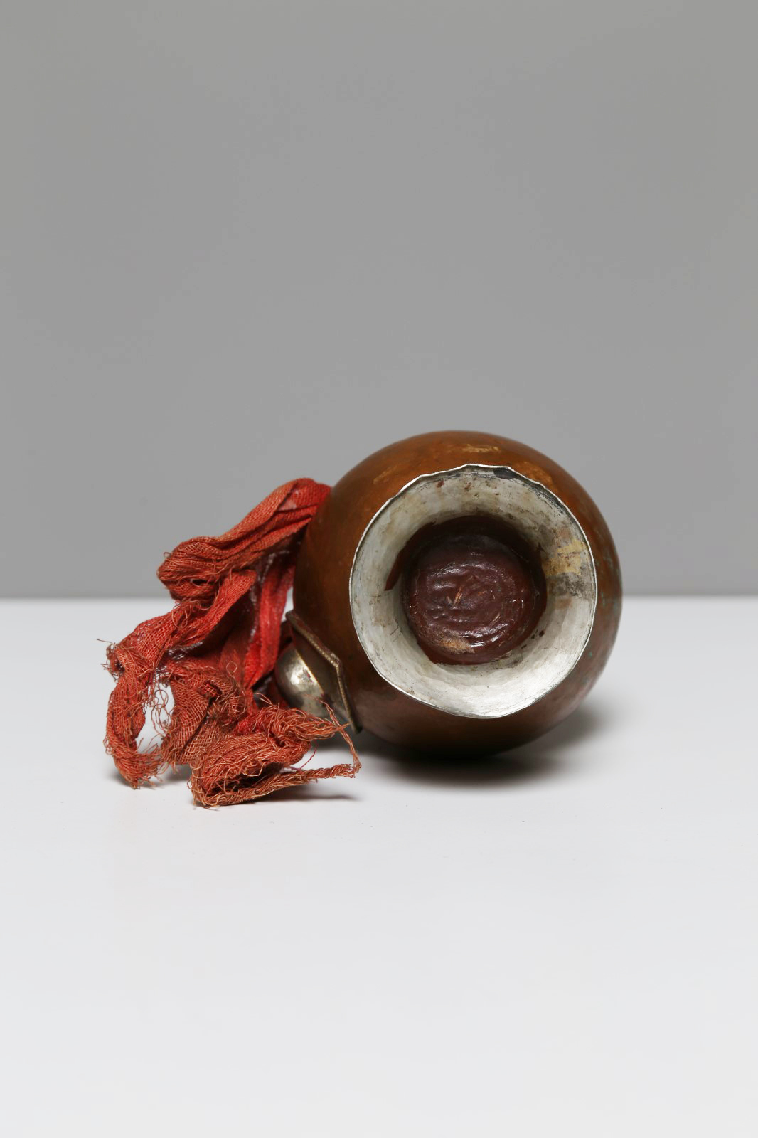Arte Himalayana Bumpa in rame con turchese Tibet, inizio XX secolo. -. Cm 11,00 x 22,00. Piccolo turchese incastonato sul tappo.