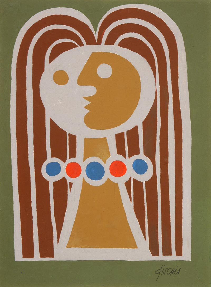 Leon Gischia (Dax 1903 1991) Ragazza alla collana 1971 Olio su tela, cm. 73x54 Firmato in basso a destra. Sul verso: firma, data e titolo.