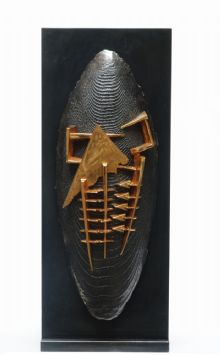 "Scudo" 1992, scultura in bronzo lucidato e ferro brunito (cm 36,5x14,5) Firmato in basso a destra, es. n. 9