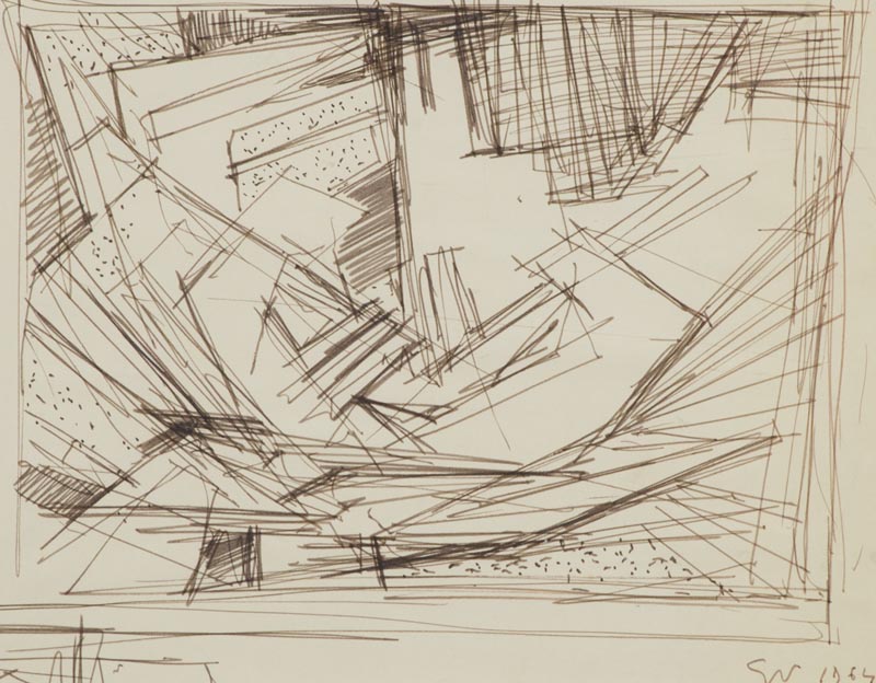 Gualtiero Nativi (Pistoia 1921 Greve in Chianti (Fi) 1999) Studio 1964 China su carta, cm. 33x36 Firmato in baso a destra. Autentica dell'Archivio Gualtiero Nativi su foto con timbro a secco, firma "Berto Nativi" e Archivio n° D644.