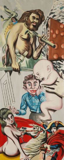Errò Gudmundur Olafsvik 1932 "Home after hunting" (dalla serie "The Aggression") 1968-69, acrilico su tela (cm 126,5x51) Firmato e datato al retro: Errò 69/Mai 68 Bibliografia: A.A.V.V. "Errò Catalogo Generale" - Milano - 1976 - p. 136 (pubbl. con misure errate)