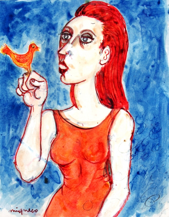 MIGNECO GIUSEPPE (Messina 1908 - Milano 1997) "Figura con uccellino" China...
