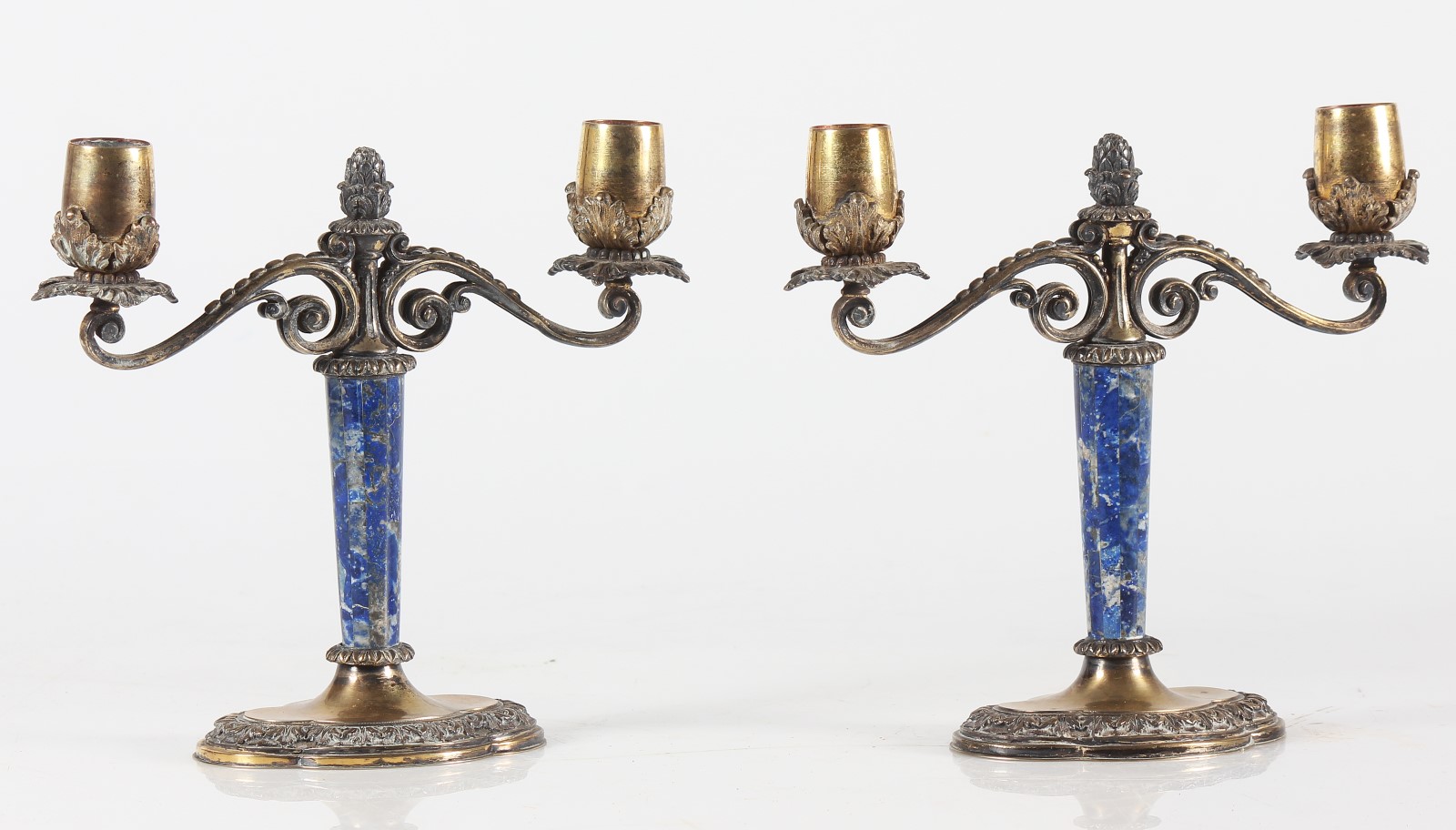 Lot 6 | MANIFATTURA ITALIANA Coppia di candelabri in argento a due fiamme, manico...