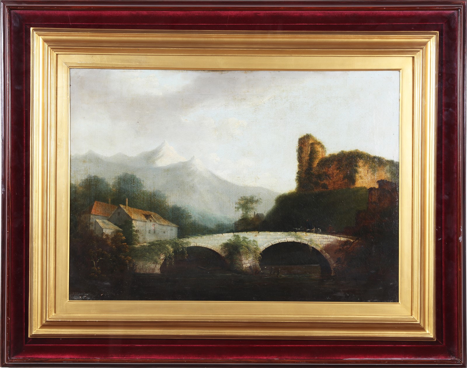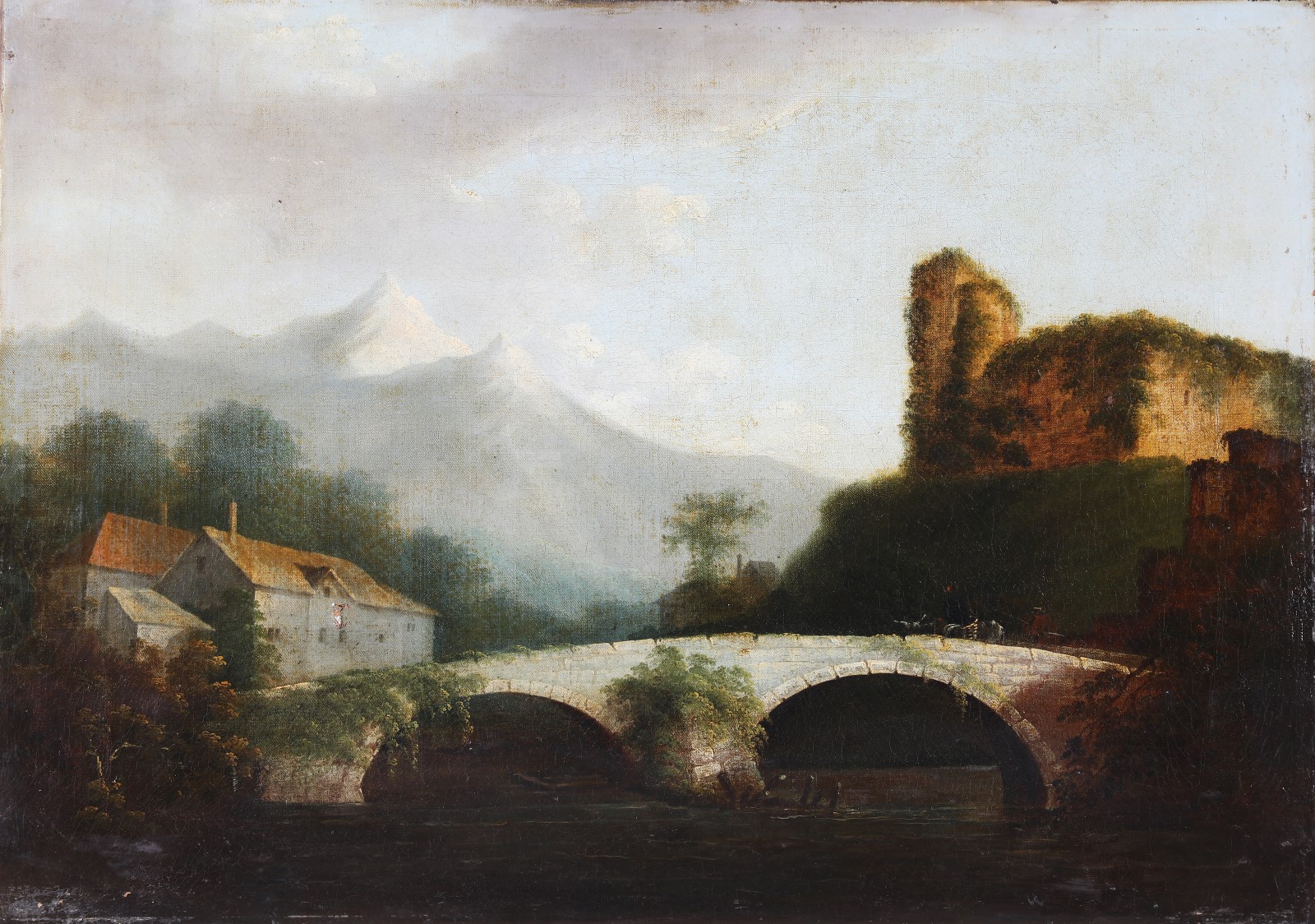 Lot 32 | ARTISTA DEL XVIII SECOLO Il ponte. Olio su tela. Cm 70,00 x 50,00. piccola...