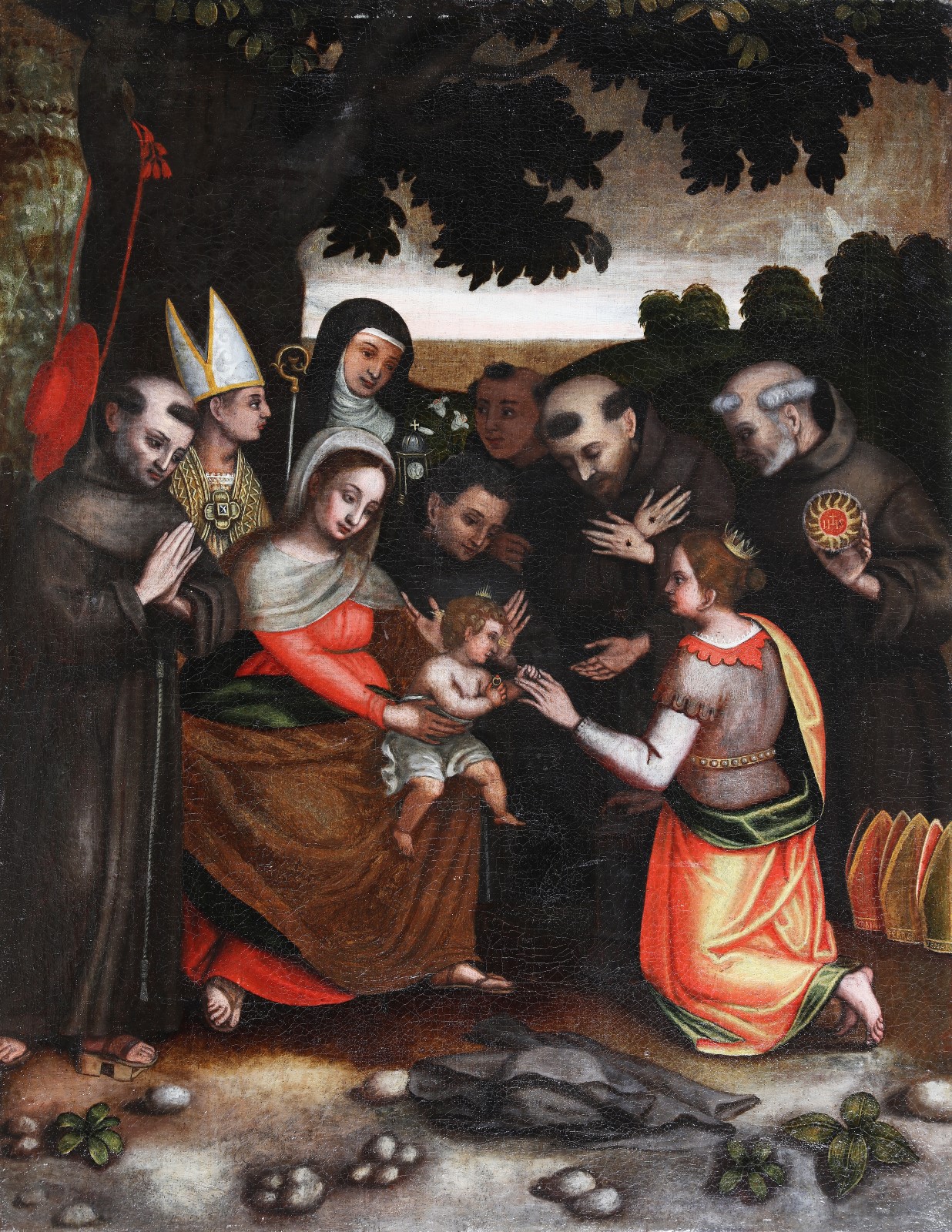 ARTISTA LOMBARDO DEL XVI SECOLO Madonna con Bambino e Vescovi che rinunciano...