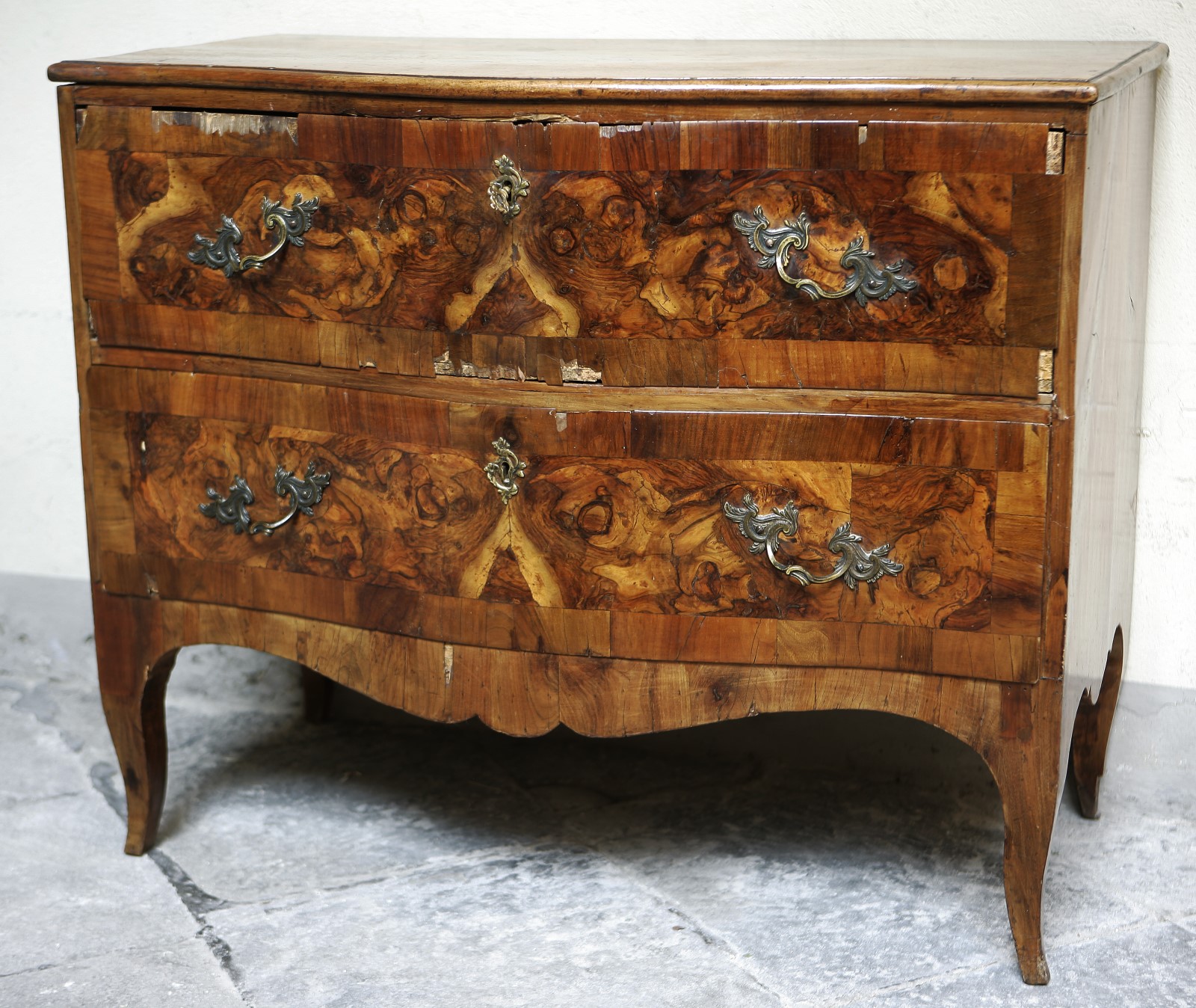 MANIFATTURA LOMBARDA DEL XVIII SECOLO Cassettone a due cassetti mosso sul...