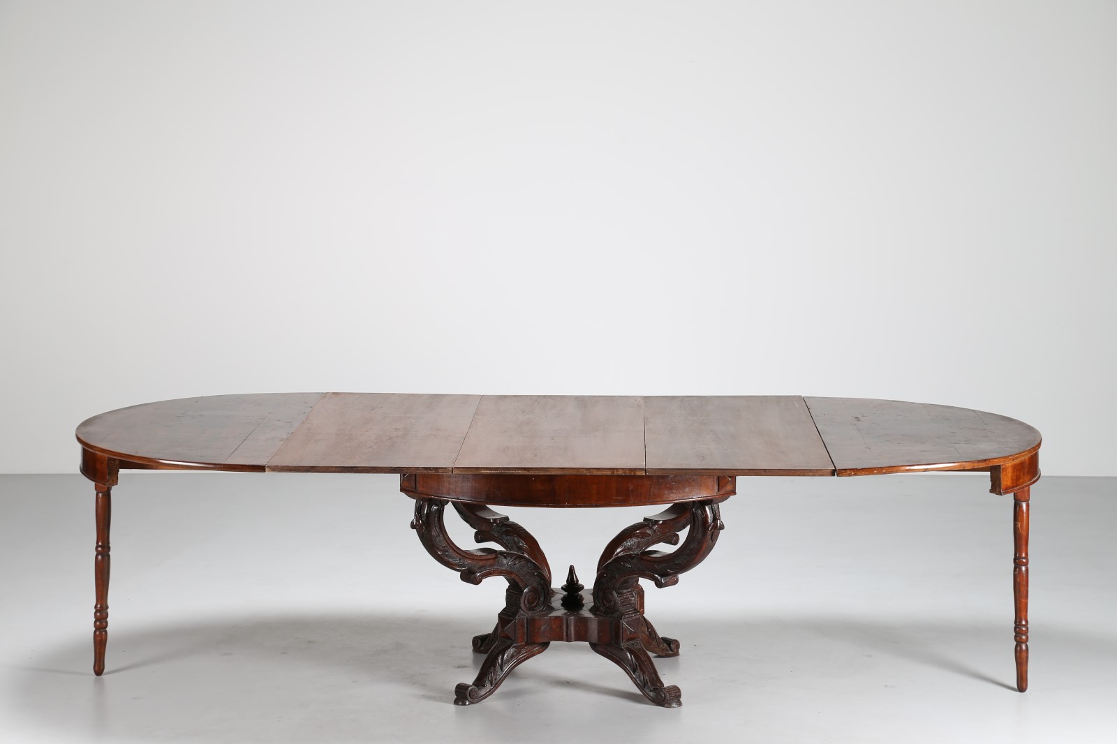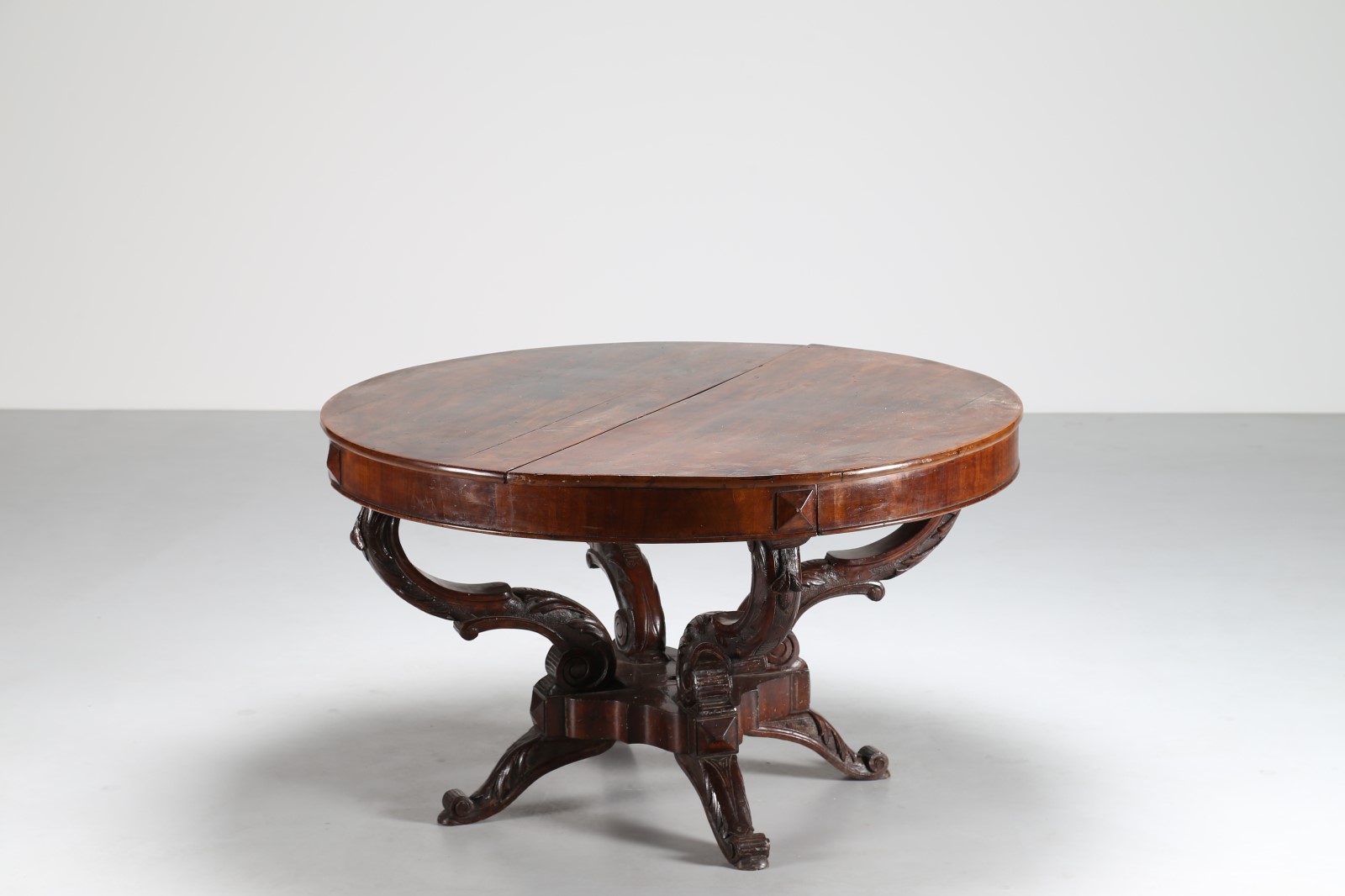 MANIFATTURA GENOVESE DEL XIX SEC. Tavolo a cestello, in legno di nove, allungabile. Legno. Cm 126,00 x 75,00.