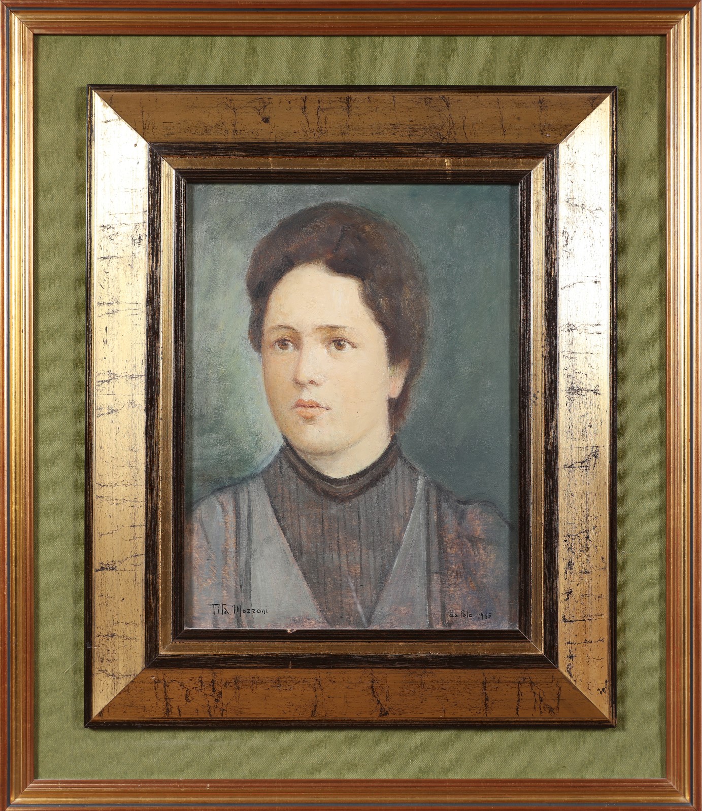 MOZZONI TITA (1894 - 1986) Ritratto di donna. 1955. Olio su tela. Cm 30,00 x 40,00. Firma e anno in basso. Cornice presente