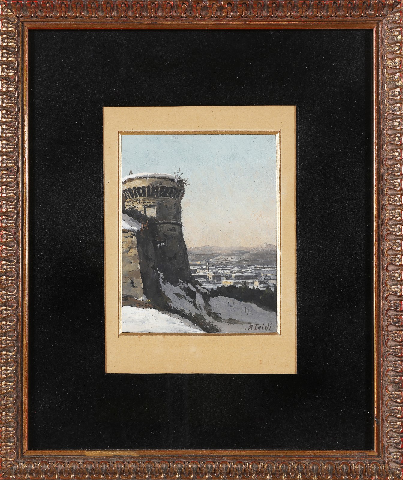 LEIDI PIETRO (1892 - 1930) Veduta del castello di Brescia. Olio su cartoncino. Cm 10,50 x 13,00. Firma in basso a destra. Cornice presente