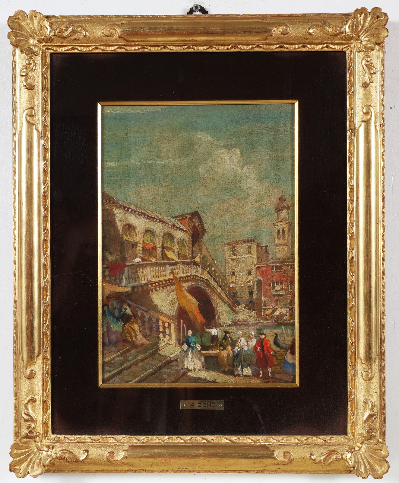 ZENO (EUGENIO BONIVENTO) (1880 - 1956) Paesaggio veneziano. Olio su tela. Cm 35,00 x 25,00. . Cornice presente