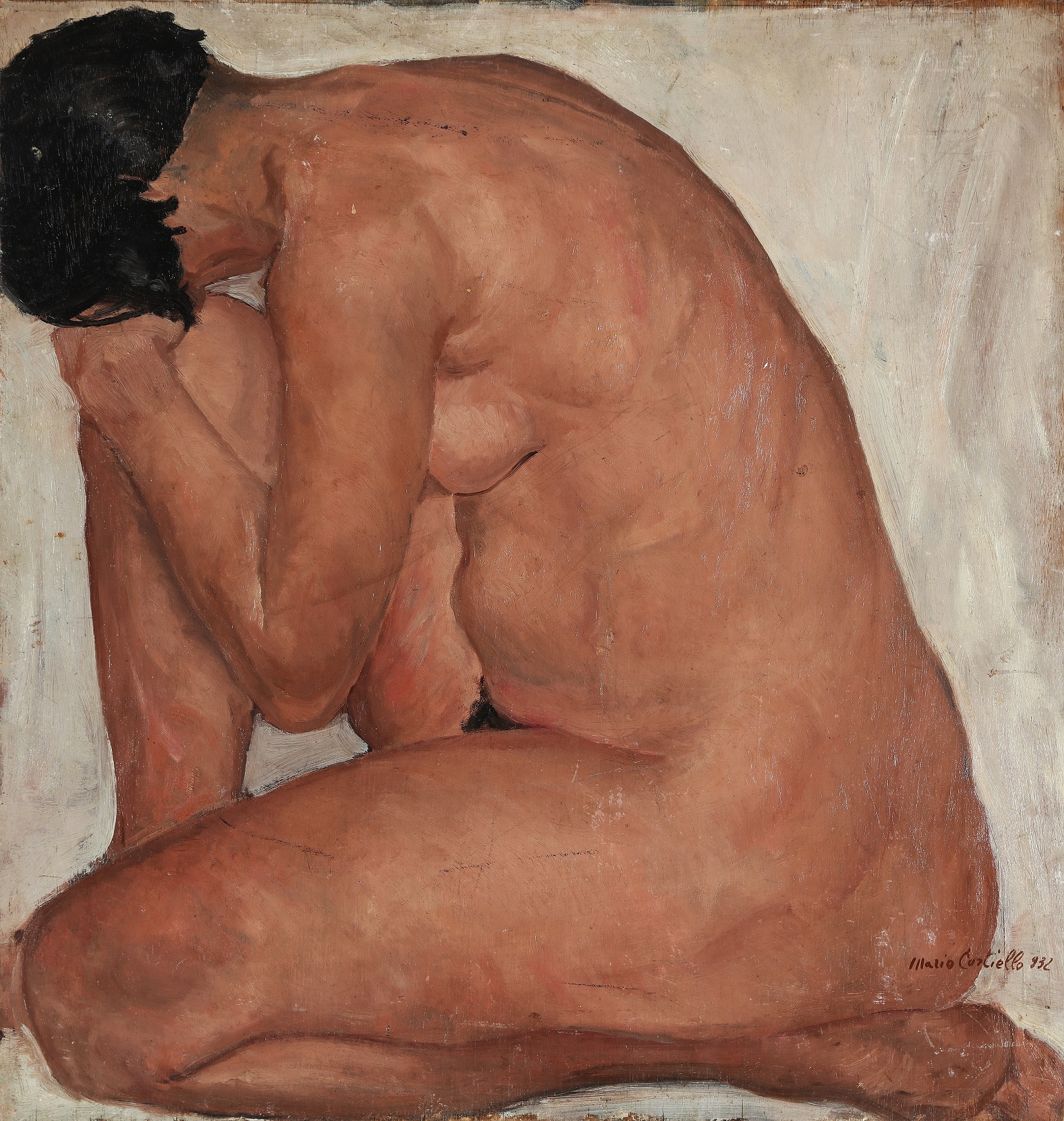 CORTIELLO MARIO (1907 - 1982) Nudo femminile. 1932. Olio su faesite. Cm 51,50 x 51,00. Firma e anno in basso a destra.