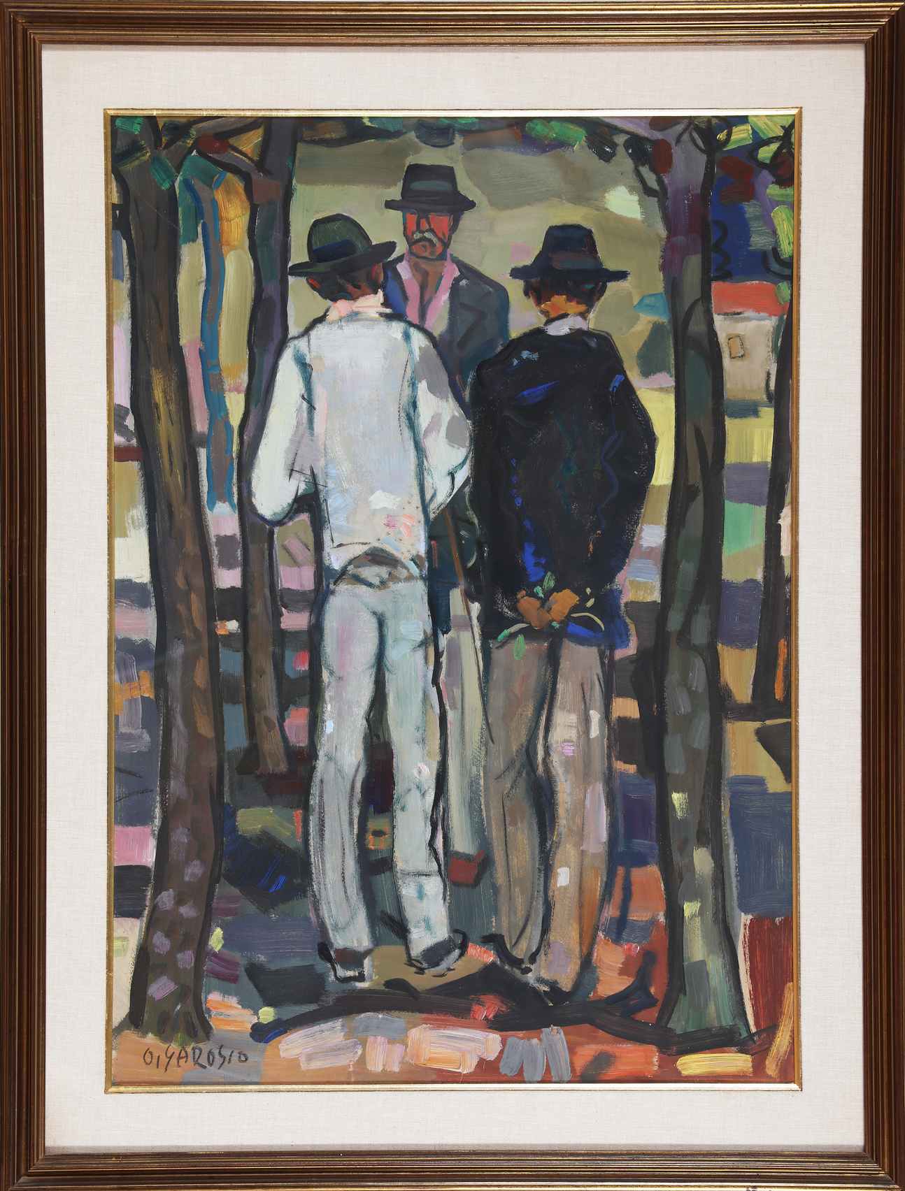 GAROSIO OTTORINO (1904 - 1980) Tre uomini. Olio su cartone pressato. Cm 61,50 x 83,00. Firma in basso a sinistra. Cornice presente