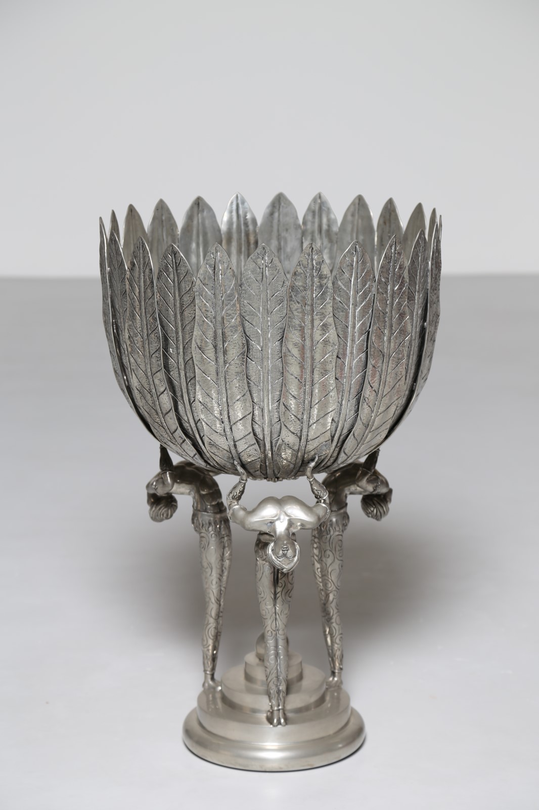 MANIFATTURA ITALIANA DEGLI INIZI DEL XX SECOLO Centrotavola in stile liberty. Metallo. Cm 46,00 x 76,00 x 46,00.
