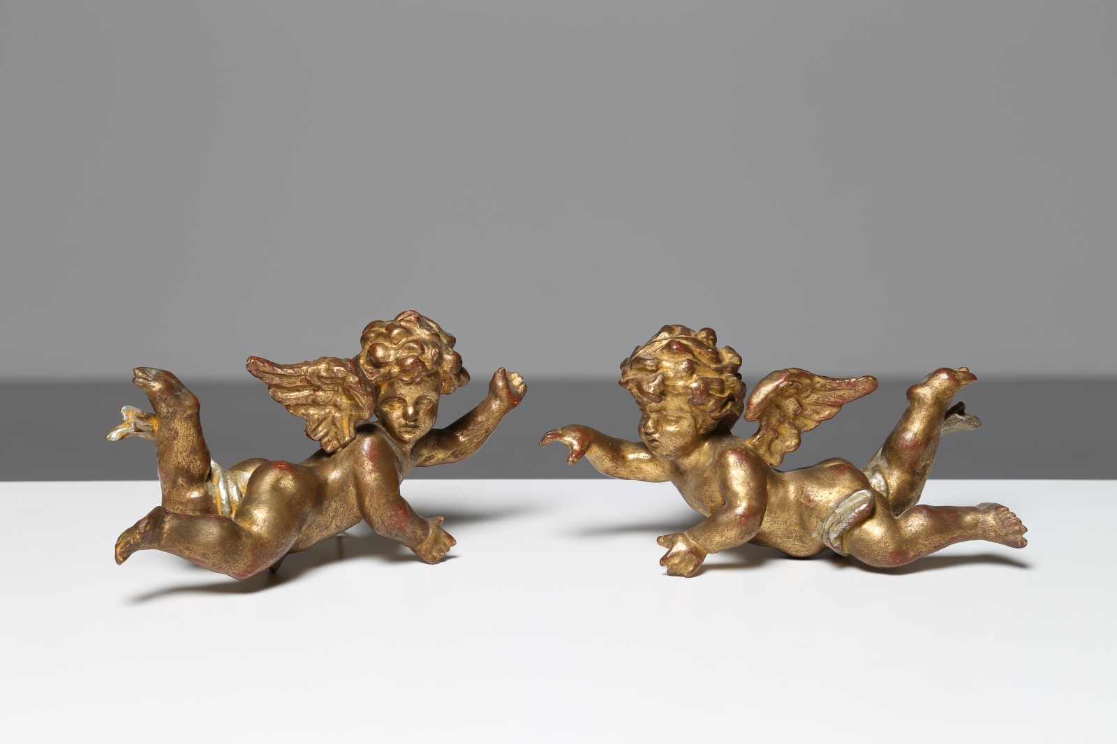 MANIFATTURA ITALIANA DEL XX SECOLO Coppia di angeli in legno dorato nello stile del XVIII secolo. Legno dorato. Cm 26,00 x 12,00 x 12,00.