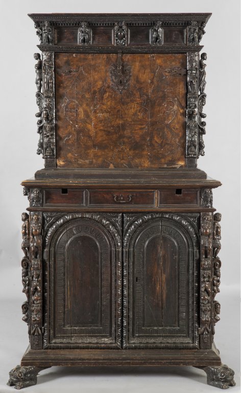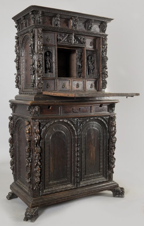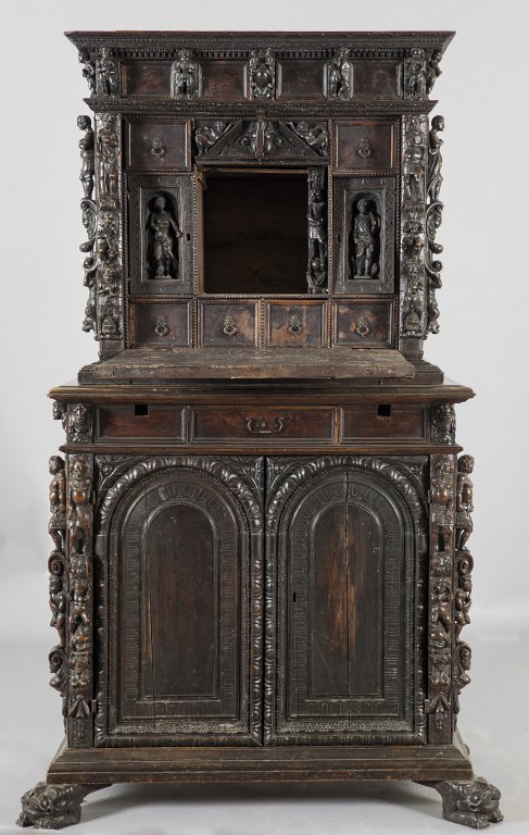 Lot 101 | Stipo a bambocci a due corpi in noce e radica di noce in stile antico, Genova...