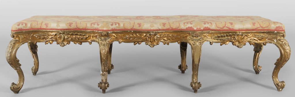 Lot 114 | Coppia di panche a tre posti in legno finemente intagliato e dorato, Roma...