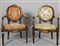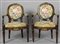 Quattro poltrone Luigi XVI in noce, schienale ovale, cimasa con nastrini...