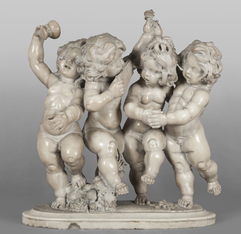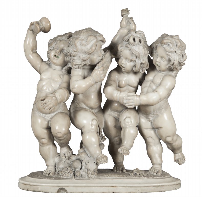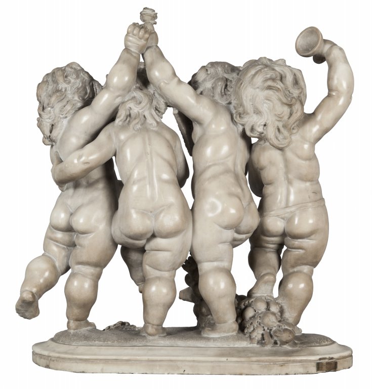 Quattro putti danzanti, gruppo in marmo bianco statuario, sec.XIX