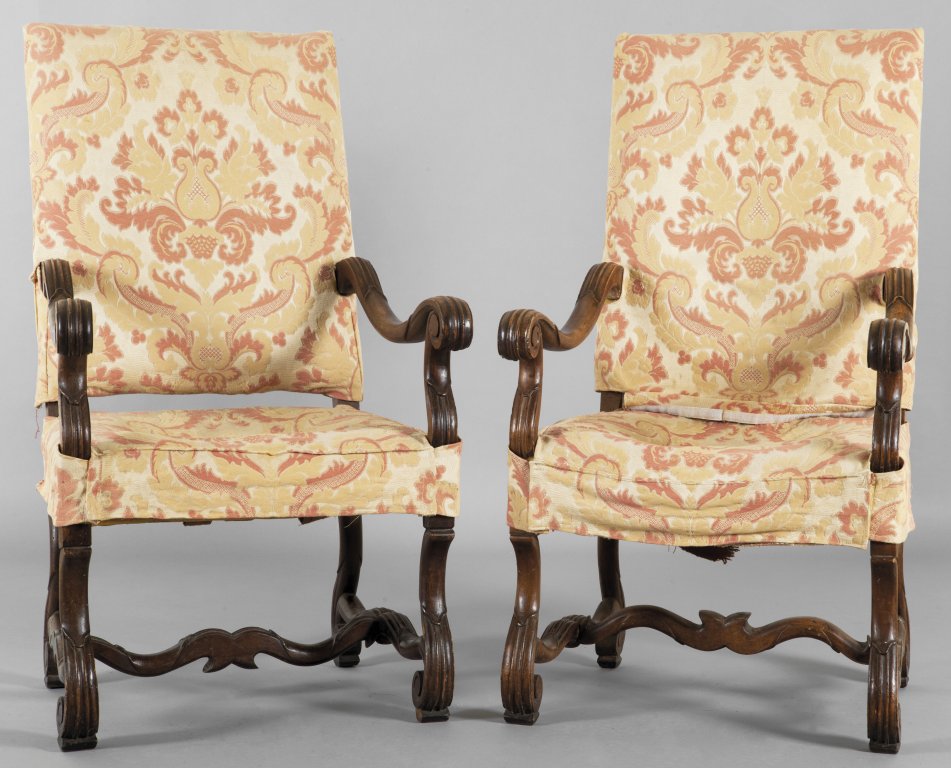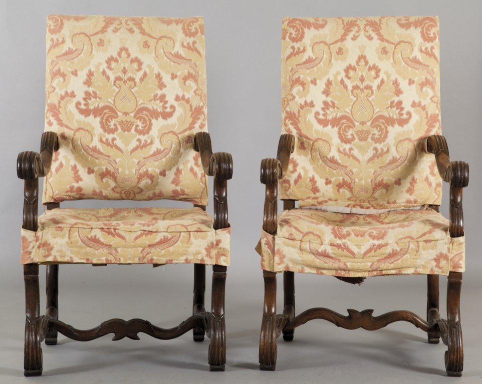 Coppia di poltrone in noce a osso di montone, sec. XIX