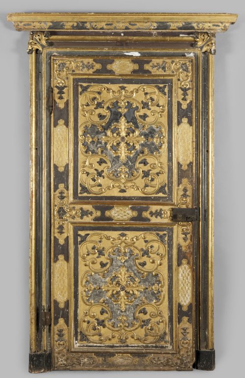 Porta con telaio in legno finemente intagliato, laccato e dorato, Piemonte I metà sec.XVIII