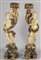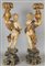Coppia di putti portatorciera a forma di delfino in legno intagliato, laccato...