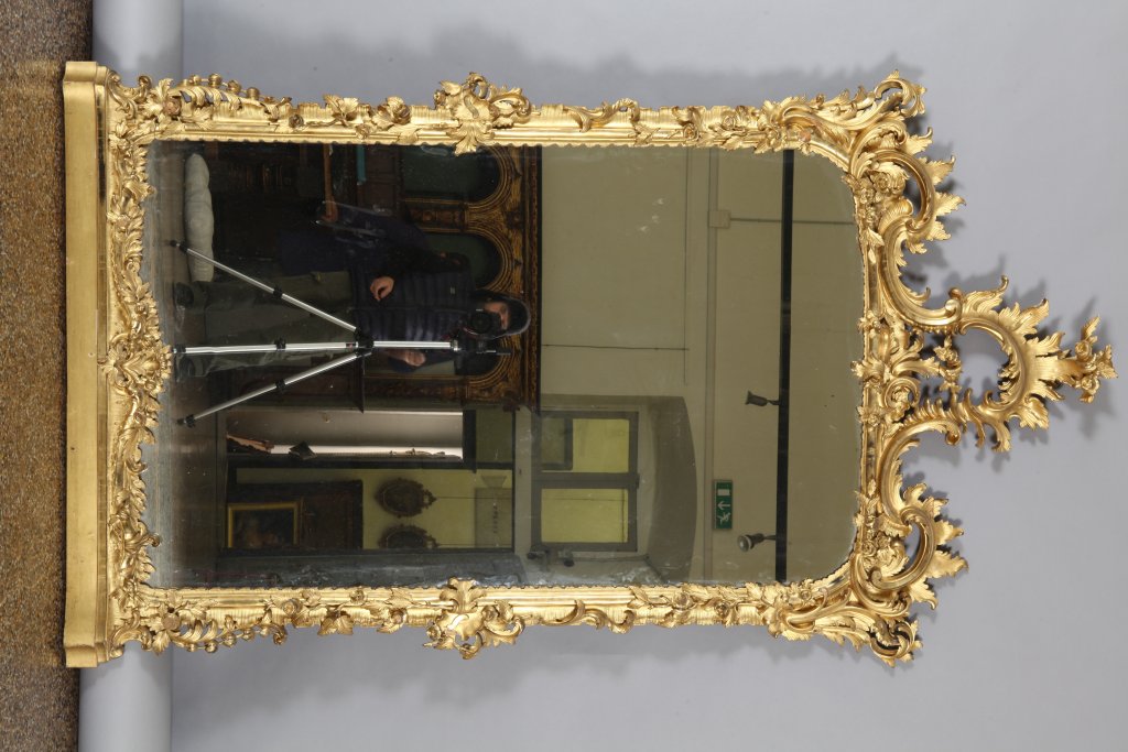 Specchiera Luigi Filippo in legno finemente intagliato e dorato, Genova sec.XIX