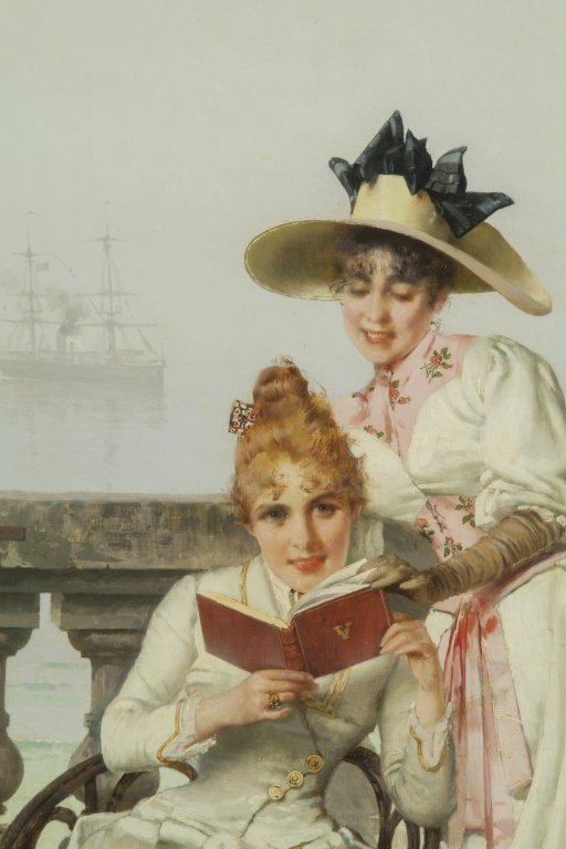 VITTORIO MATTEO CORCOS (1859-1933) Due ragazze sul terrazzoolio cm. 73x103...