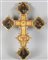 Croce polilobata in legno dorato con raffigurazione di santi, sec.XVIIcm.38x45