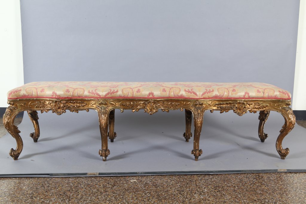 Panca a tre posti in legno finemente intagliato e dorato, Roma sec.XIX (difetti e mancanze)