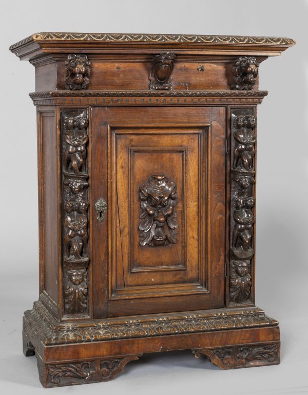 Credenzino in noce in stile rinascimentale, sec.XXcm.78x40 h. 100