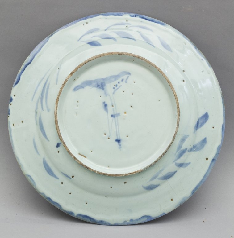 Piatto in maiolica bianca e blu con al centro cavaliere con cane, marca Lanterna, Savona sec.XVII