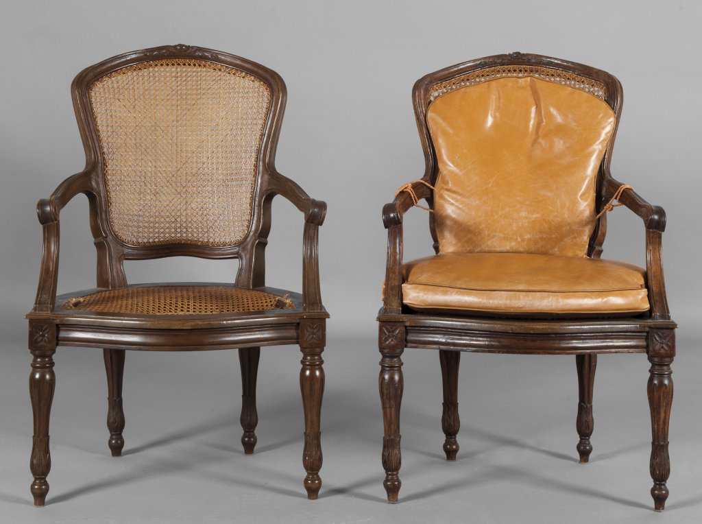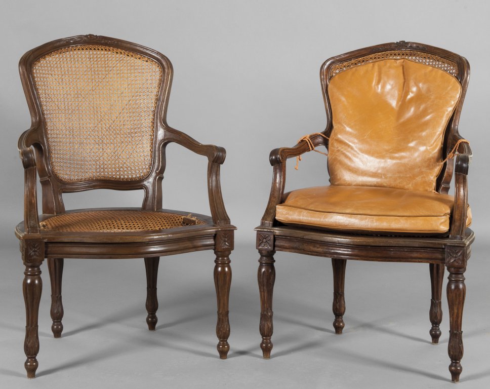 Poltrona Luigi XVI in noce, Genova sec. XVIII e poltrona analoga non antica