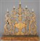 Coppia di portacandele a 5 luci in legno intagliato e dorato, vaso centrale da cui si dipartono i bracci, sec. XVIII