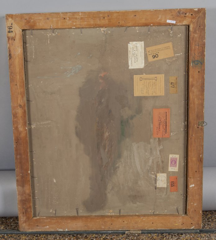 nel retro targhetta XXVI biennale internazione d'arte di Venezia 1952 n.477, esposizione d'arte italiana moderna ad Atene, fondazione premio di pittura F.P.Michetti, I premio biennale di pittura di Macerata