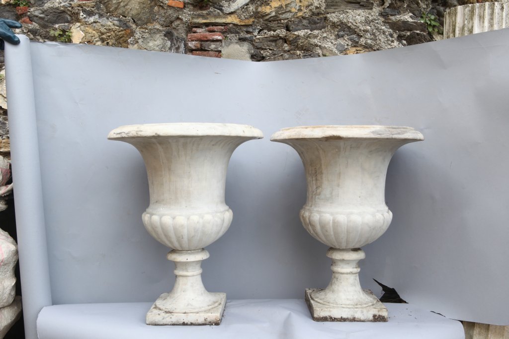 Coppia di vasi medicei in marmo bianco, Genova sec XIX