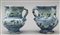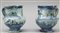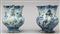 Coppia di piccoli versatoi in ceramica, decorazione bianca e blu con putti e...