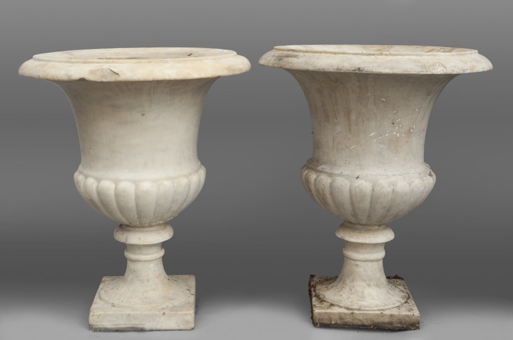Coppia di vasi medicei in marmo bianco, Genova sec XIX
