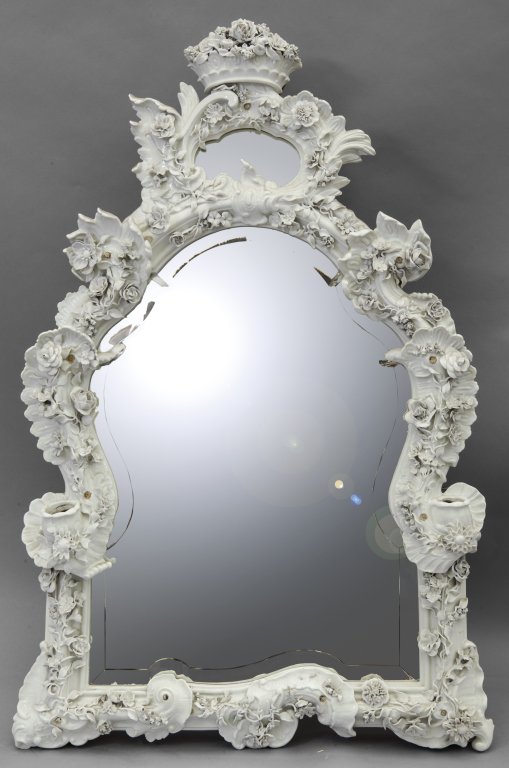 Specchiera in porcellana bianca con fiori a rilievo, sec. XIX