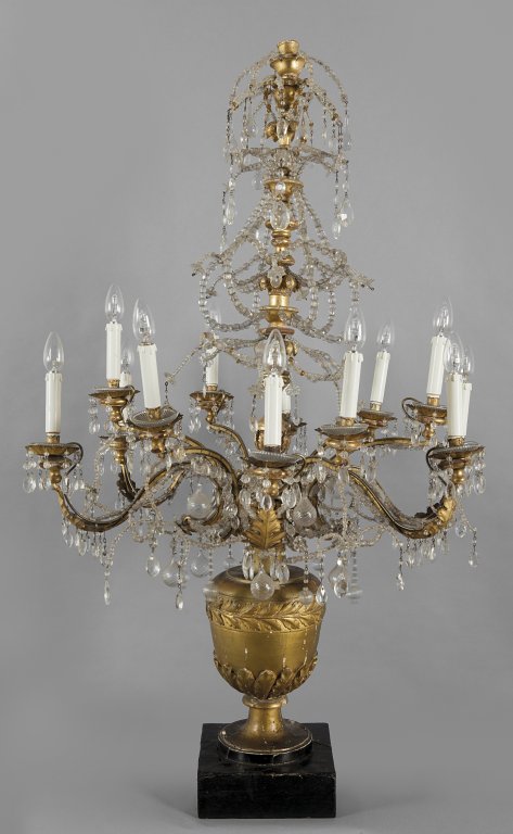 Grande vaso in legno dorato da centro con bracci portaluci, Genova sec. XVIII