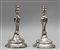 Coppia di candelieri Luigi XV in argento di fusione, Punzone della Torretta anno 77, Genova sec. XVIII