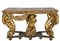 Console barocca in legno intagliato e dorato, gambe a volute con putto...