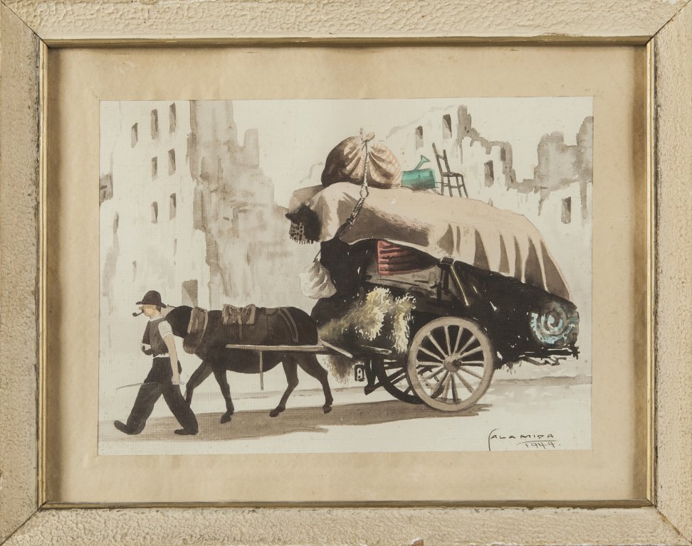 Calamida, "Il trasloco durante la guerra", f.to b.a.dx, e d.to '44cm 34 x 24