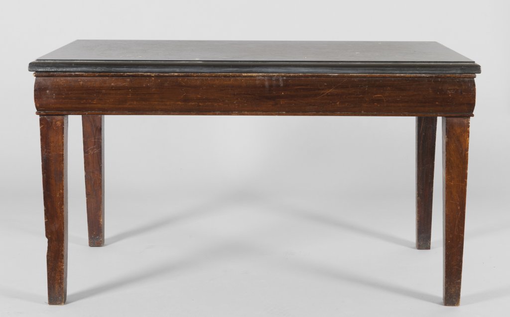Tavolo rettangolare in noce con piano in ardesiacm. 77x139xh.80