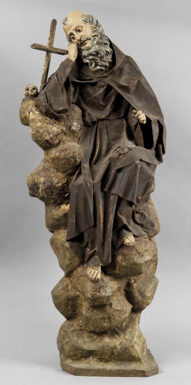 Frate in meditazione sulla roccia, gruppo in cartapesta sec. XVII (difetti)