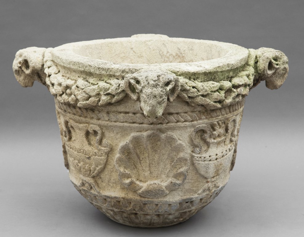 Vaso in pietra scolpita con teste di ariete, sec.XVII