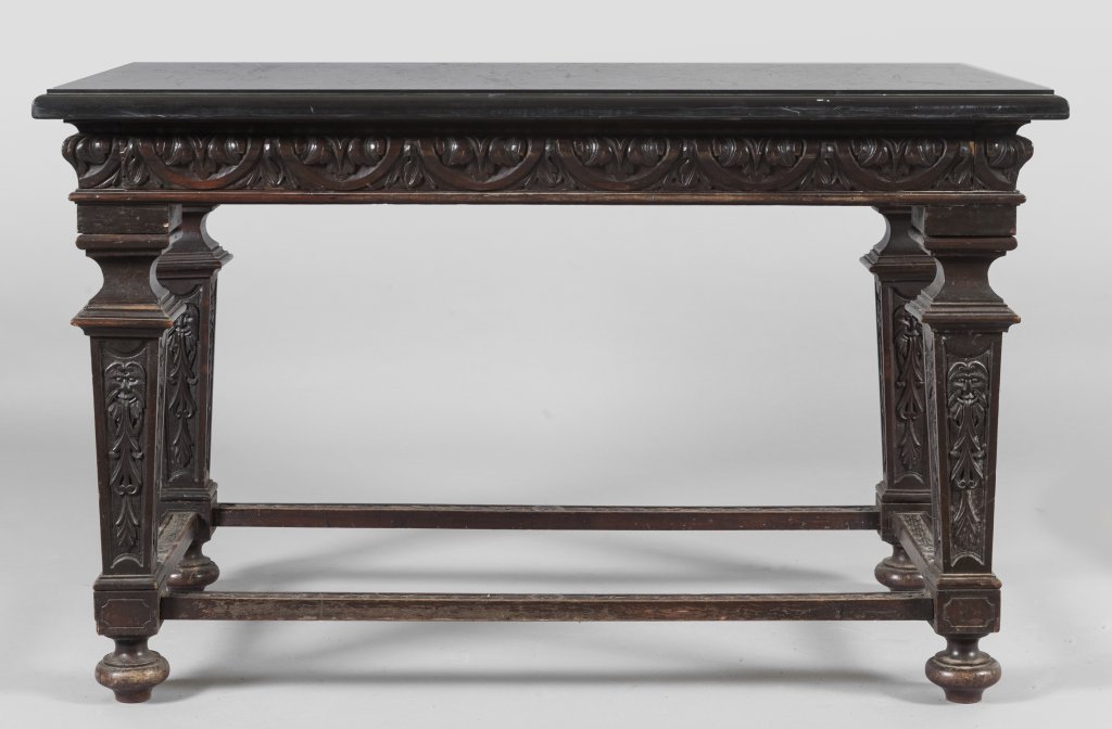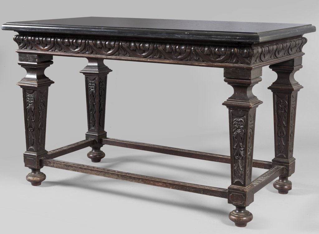 Tavolo rettangolare in noce con piano in ardesia, sec.XIX