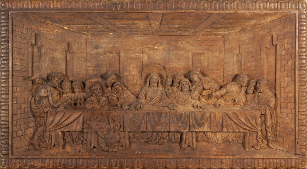 Pannello in legno intagliato raffigurante l'Ultima Cena