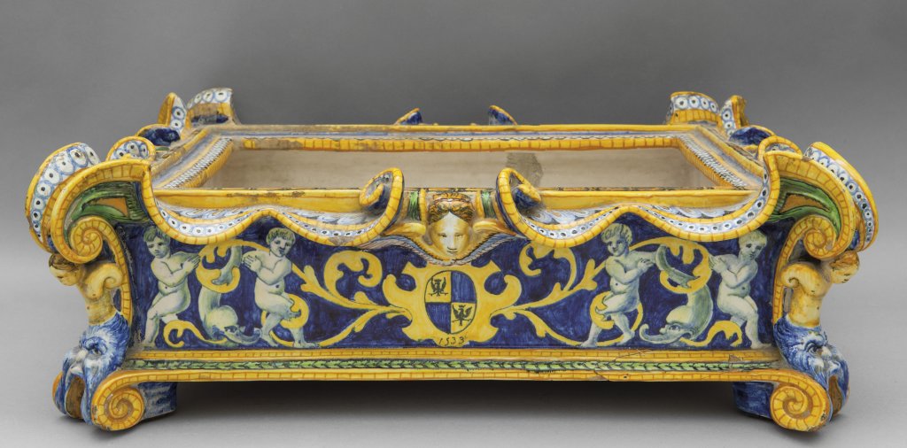 Centrotavola in ceramica policroma, Bottega Pattanazzi, Urbino sec. XVII
