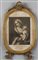 "Vergine con Bambino"stampa da Leonardo entro cornice di forma ovale in legno intagliato e laccato del sec.XVIII