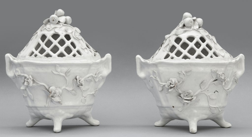 Lot 603 | Coppia di fioriere in ceramica bianca, Savona sec.XIX cm.25x11xh.28